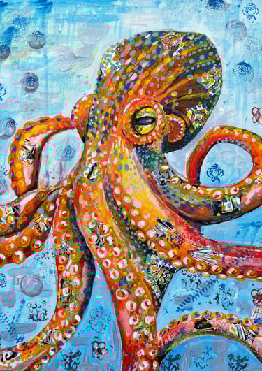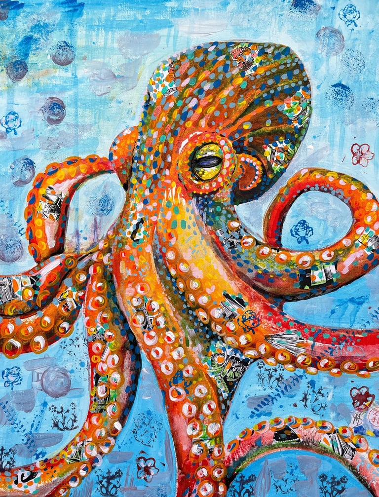 Visit my seaside gallery for unique wildlife art and workshops blending Japanese influences with vibrant colors and mixed media.